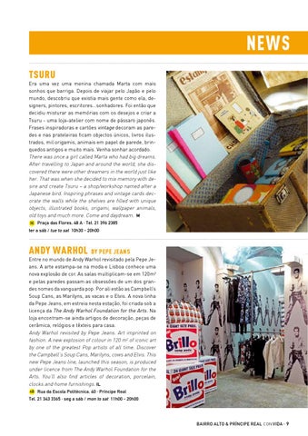 news Tsuru Era uma vez uma menina chamada Marta com mais sonhos que barriga. Depois de viajar pelo Japão e pelo mundo, descobriu que existia mais gente como ela, designers, pintores, escritores…sonhadores. Foi então que decidiu misturar as memórias com os desejos e criar a Tsuru - uma loja-atelier com nome de pássaro japonês. Frases inspiradoras e cartões vintage decoram as paredes e nas prateleiras ficam objectos únicos, livros ilustrados, mil origamis, animais em papel de parede, brinquedos antigos e muito mais. Venha sonhar acordado. There was once a girl called Marta who had big dreams. After travelling to Japan and around the world, she discovered there were other dreamers in the world just like her. That was when she decided to mix memory with desire and create Tsuru – a shop/workshop named after a Japanese bird. Inspiring phrases and vintage cards decorate the walls while the shelves are filled with unique objects, illustrated books, origami, wallpaper animals, old toys and much more. Come and daydream. M 3E