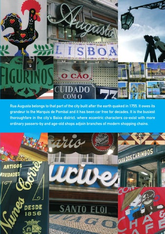 Rua Augusta belongs to that part of the city built after the earth quaked in 1755. It owes its grandeur to the Marquis de Pombal and it has been car free for decades. It is the busiest thoroughfare in the city’s Baixa district, where eccentric characters co-exist with more ordinary passers-by and age-old shops adjoin branches of modern shopping chains.