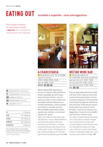 parque próximo / nearby parking refeições tardias / meals after hours multibanco / ATM card cartão de crédito / credit card esplanada / open-air