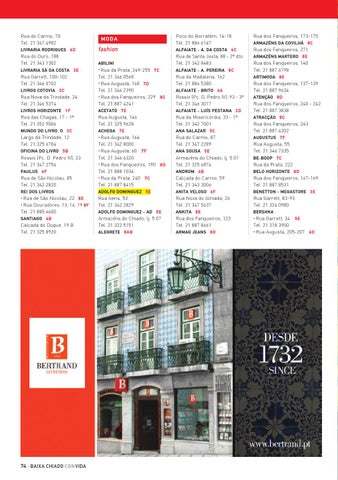 da Prata, 249-255 7 C Tel. 21 346 0568 • Rua Augusta, 168 7 D Tel. 21 346 2390 • Rua dos Fanqueiros, 229 8 C Tel. 21 887 4241