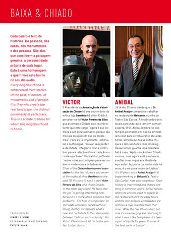 baixa & chiado Cada bairro é feito de histórias. Do passado, das casas, dos monumentos e das pessoas. São elas que constroem a paisagem genuína, a personalidade própria de cada lugar. Esta é uma homenagem a quem vive este bairro no seu dia-a-dia. Every neighbourhood is constructed from stories. Of the past, of houses, of monuments and of people. It is they who create the real landscape, the distinct personality of each place. This is a tribute to those for whom this neighbourhood is home.