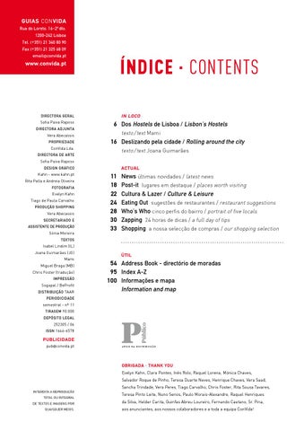 News últimas novidades / latest news Post-it lugares em destaque / places worth visiting Cultura & Lazer / Culture & Leisure Eating Out sugestões de restaurantes / restaurant suggestions Who’s Who cinco perfis do bairro / portrait of five locals Zapping 24 horas de dicas / a full day of tips Shopping a nossa selecção de compras / our shopping selection