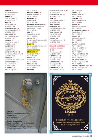 de Santa Justa, 79 6 C Tel. 21 347 9037 • Rua da Prata, 184 7 D Tel. 21 887 7355