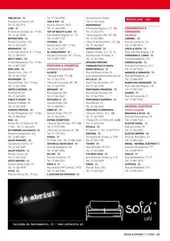 da Prata, 173 7 D Tel. 21 342 7914 • Rua da Conceição, 85 7 F Tel. 21 342 5770