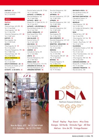 do Ouro, 287 5 C Tel. 21 346 9153 • Rua Augusta, 142-144 7 E Tel. 21 387 7063 • Outlet - Rua Prata, 167 7 D Tel. 21 347 2142 Calzedonia • Armazéns