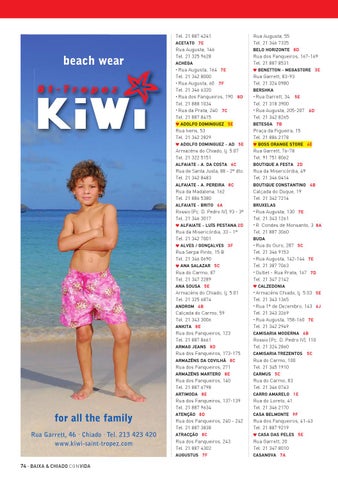 do Ouro, 287 5 C Tel. 21 346 9153 • Rua Augusta, 142-144 7 E Tel. 21 387 7063 • Outlet - Rua Prata, 167 7 D Tel. 21 347 2142 Calzedonia • Armazéns