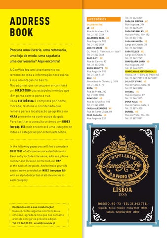 Contamos com a sua colaboração ! Caso encontre alguma incorrecção ou omissão, agradecemos que nos contacte a fim de corrigir na próxima edição. Tel. 21 340 80 90 · email@convida.pt 48 · baix a & chiado con vida