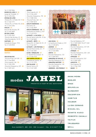 fashion da Prata, 249-255 7C Tel. 21 346 0568 • Rua Augusta, 168 7D Tel. 21 346 2390 • Rua dos Fanqueiros, 229 8 C Tel. 21 887 4241