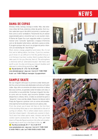 news Dama de Copas Ameixa, limão, laranja, toranja e melão. Não, não estamos a falar de fruta, estamos a falar de peitos. Se é mulher sabe bem que é tão difícil encontrar o soutien perfeito como o amor verdadeiro. Felizmente há um atelier especializado para o encontrar por si, ao soutien claro. O Dama de Copas fica num segundo andar e é preciso marcar uma “consulta” (gratuita), o espaço é feminino com ar de boudoir-alternativo, vale bem a pena a visita. E já agora porque não reunir as amigas do peito e fazerem um workshop de “bra fitting”? Plum, lemon, orange, grapefruit and melon. No, it’s not fruit we’re talking about, but bras. If you’re a woman, you’ll know it’s as difficult to find the perfect bra as it is to find your true love. Luckily, there’s a place that can take care of it for you (the bra, that is). The atmosphere is feminine with an ‘alternative boudoir’ feel that’s well worth a visit. So why not bring your bosom buddies and take part in a bra-fitting workshop? MP 5C