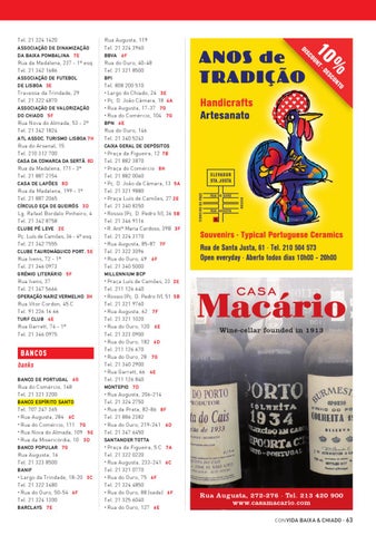 da Figueira, 5 C 7 A Tel. 21 322 0220 • Rua Augusta, 233-241 6 C Tel. 21 321 0770 • Rua do Ouro, 75 6 F Tel. 21 324 4850 • Rua do Ouro, 88 (sede) 6 F Tel. 21 325 6040 • Rua do Ouro, 127 6 E con vida BAIX A & CHIADO ·