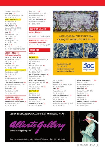 Augusta, 285-295 6 B Tel. 21 347 8354 • Rua Garrett, 83-93 3 E Tel. 21 324 0980