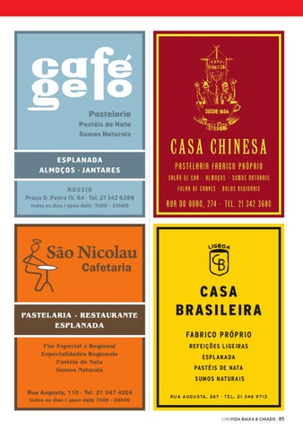 CASA B RAS ILE IRA FAB RICO PRÓ PRIO R E FE I Ç Õ E S L I G E IRAS ES P L A NA DA PAST É I S D E NATA S U M OS NAT U RA I S RUA AUG USTA , 267 · TEL. 21 346 97 1 3