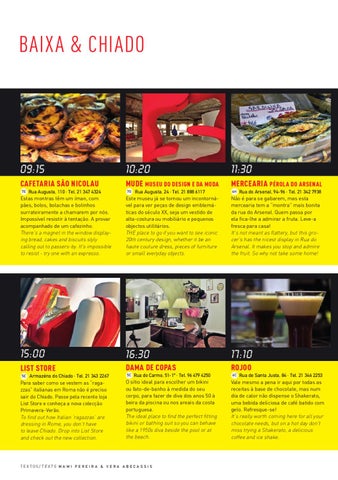 6C Rua de Santa Justa, 84 · Tel. 21 346 2253 Vale mesmo a pena ir aqui por todas as receitas à base de chocolate, mas num dia de calor não dispense o Shakerato, uma bebida deliciosa de café batido com gelo. Refresque-se! It’s really worth coming here for all your chocolate needs, but on a hot day don’t miss trying a Shakerato, a delicious coffee and ice shake.