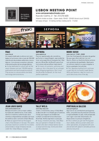 www.sephora.pt Para os apaixonados de cosmética, perfumes e maquilhagem, aqui poderão viver uma experiência inesquecível. Não perca o Brow Bar da Benefit, para ficar com umas sobrancelhas impecáveis! 3 For lovers of cosmetics, perfumes and make up, this is the place for an unforgettable shopping experience. Don’t miss the Brow Bar by Benefit, for the most perfect eyebrows!