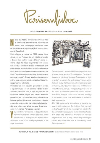 RUA GARRETT, 77 · TEL. 21 342 4329 · WWW.PARISEMLISBOA.PT · SEGUNDA A SÁBADO / MONDAY TO SATURDAY 10H00 - 19H00