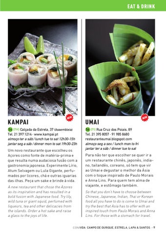 56 [7I] Rua Cruz dos Poiais, 89 Tel. 21 395 8057 · 91 985 8680 restauranteumai.blogspot.com almoço seg a sex / lunch mon to fri jantar ter a sáb / dinner tue to sat