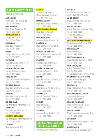 Rua Almeida e Sousa, 70A Tel. 21 385 3868 • Rua da Lapa, 22 Tel. 21 396 7858