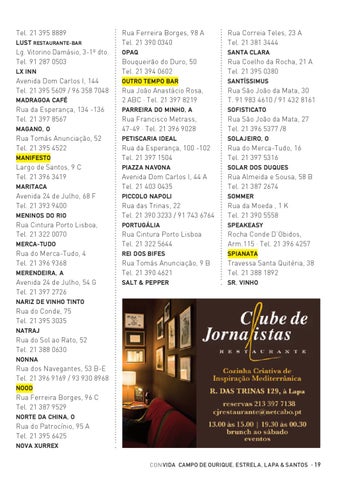 Rua do Patrocínio, 95 A Tel. 21 395 6425 Nova Xurrex con vida campo de ourique, estrela, lapa & santos · 19