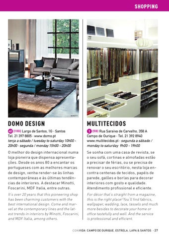 Tel. 21 397 8805 · www.domo.pt terça a sábado / tuesday to saturday 10h00 20h00 · segunda / monday 15h00 - 20h00