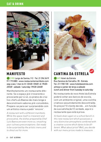 22 [4F] Hotel da Estrela Rua Saraiva de Carvalho, 35 · Estrela Tel. 211 900 100 · www.hoteldaestrela.com almoço e jantar de terça a sábado lunch and dinner from tuesday to saturday