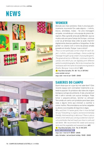 news Wonder Atenção aos mais sensíveis. Esta é uma loja politicamente incorrecta! Em cada objecto – t-shirts, blocos, almofadas, malas - há uma mensagem arrojada, concebida por uma equipa de jovens designers. Mas a grande atracção da Wonder, que se mudou este ano para Campo de Ourique, continua a ser as já famosas telas onde se pode imprimir digitalmente diversos padrões e fotografias. A não perder os colares com o nome da pessoa amada gravado em braille. Porque ‘Love is blind’! This is a non-politically correct shop! On each object – t-shirts, cushions and bags – there is a daring message thought up by a team of young designers. The great attraction of Wonder, continues to be the canvas onto which you can digitally print different patterns and photographs. Not to be missed are the necklaces with the name of a loved one engraved in Braille. Because ‘Love is blind’! AFC 3G