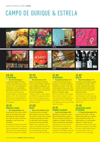 Rua Azedo Gneco, 45 A Mime-se dos pés à cabeça! Com uma decoração original e uma simpatia contagiante, sai deste cabeleireiro com cabelo, mãos e pés novos. E ainda tem serviço de depilação. Treat yourself to a full makeover! With its unique decoration and simply contagious joyfulness, you’ll leave with new hair, hands and feet.
