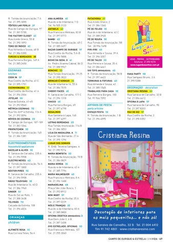 Decoração de interiores para os mais pequenitos... e não só! Rua Saraiva de Carvalho, 32 B · Tel. 21 004 6412 Tlm 91 742 4801 · www.cristianaresina.com campo de ourique & estrela con vida · 49