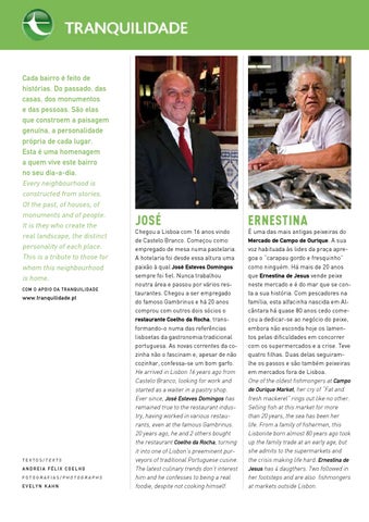 Cada bairro é feito de histórias. Do passado, das casas, dos monumentos e das pessoas. São elas que constroem a paisagem genuína, a personalidade própria de cada lugar. Esta é uma homenagem a quem vive este bairro no seu dia-a-dia. Every neighbourhood is constructed from stories. Of the past, of houses, of monuments and of people. It is they who create the real landscape, the distinct personality of each place. This is a tribute to those for whom this neighbourhood is home. Com o apoio da Tranquilidade