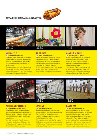 2E Rua do 4 de Infantaria, 86 Estúdio há 8 anos no bairro, onde além do tradicional ballet, há danças como as sevilhanas, o jazz e o hip hop. Há ainda ginásticas, yoga, alongamentos. Para todas as idades. A new studio where besides traditional ballet they also offer oriental and hip hop dance classes. There’s also gymnastics, yoga, pilates and massage.