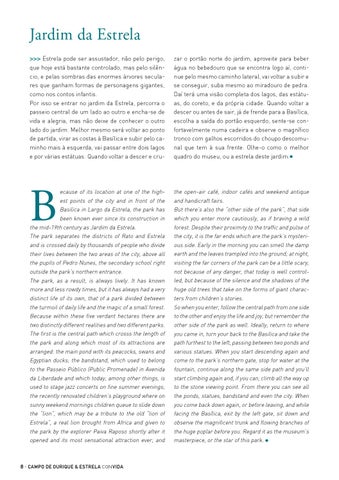 Jardim da Estrela >>> Estrela pode ser assustador, não pelo perigo, que hoje está bastante controlado, mas pelo silêncio, e pelas sombras das enormes árvores seculares que ganham formas de personagens gigantes, como nos contos infantis. Por isso se entrar no jardim da Estrela, percorra o passeio central de um lado ao outro e encha-se de vida e alegria, mas não deixe de conhecer o outro lado do jardim. Melhor mesmo será voltar ao ponto de partida, virar as costas à Basílica e subir pelo caminho mais à esquerda, vai passar entre dois lagos e por várias estátuas. Quando voltar a descer e cru-