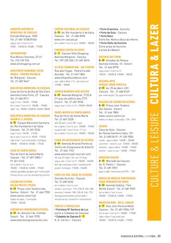 C- 7F Rua Júlio Pereira Mello Cascais · Tel. 21 481 5906 / 07 ter a sex / tue to fri 10h00 - 17h00 sáb e dom / sat and sun 10h00 - 13h00 & 14h00 - 17h00