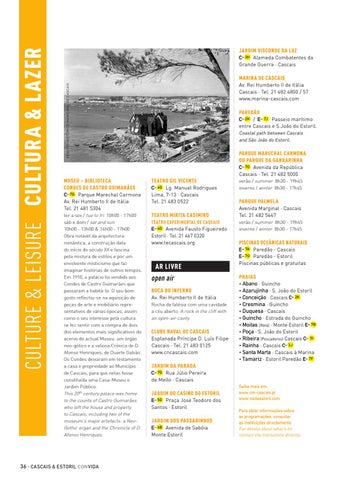 Saiba mais em: www.cm-cascais.pt www.visiteestoril.com Para obter informações sobre as programações, consultar as instituições directamente. For details about what’s on contact the institutions directly.