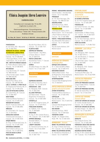 Av. Marginal, 9302 · Cascais Tel. 21 482 7270 / 1 • Av. do Ultramar, 2 · Cascais Tel. 21 482 7280 / 1 • Rua Fernão Lopes · Cascais Tel. 21 484 9380