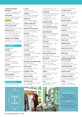 Avenida Engº Adelino Amaro da Costa, 189 B · Cascais Tel. 21 482 4140 • Rua Biarritz, 12 · Estoril Tel. 21 464 3810 •