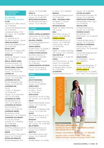 Rua da Torre, 1030 · Cascais Tel. 21 483 3662 • Cascais Villa Shopping Center Tel. 21 481 8755 • Avenida de Sabóia, 515 B Mte. Estoril · Tel. 21 468 0085 •
