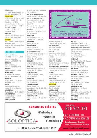 Av. 25 de Abril, 10 D · Cascais Tel. 21 482 8490 • Cascais Villa Shopping Center Tel. 21 482 7110