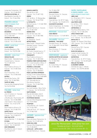 Av. D. Carlos I, 6 · Cascais Tel. 21 486 5157 • Vila Bicuda · Rua Faisões, 81 Cascais · Tel. 21 486 0080 • Gal. Estoril · Rua Lisboa, 5 Estoril · Tel. 21 467 6770