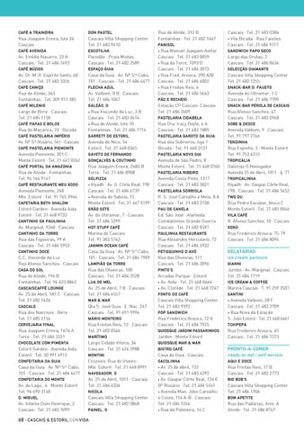 Av. 25 de Abril, 722 Cascais · Tel. 21 483 4392 • Av. Gaspar Côrte Real, 126 E Bº Rosário · Tel. 21 484 5141 • Avenida Man. Júlio Carvalho e Costa, 116 A-B · Cascais Tel. 21 484 1246 • Rua da Palmeira, 14 C