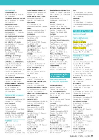 Al. Comb. Grande Guerra, 114 Cascais · Tel. 21 484 8300 • Av. 25 de Abril, 79 Cascais · Tel. 21 484 8420 Casa da Guia · Av. Nª Sra Cabo, 101 · Cascais · Tel. 21 482 4120 • Centro Congressos Estoril Av. Clotilde · Tel. 21 464 6060 •