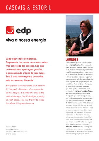 Tinha 28 anos quando assumiu sozinha o Mar do Inferno. Nas suas palavras, “era uma menina” nesse ano de 1975, mas de certeza que já tinha nela essa fibra que salta logo à vista quando se a conhece. À custa de muito trabalho e “carolice” fez deste lugar um restaurante de referência em Cascais, onde hoje em dia, graças à ajuda dos seus filhos José António e Reinaldo, se pode dedicar em exclusivo ao que mais gosta – “o contacto com os clientes”. Maria de Lourdes Tirano tem a presença de uma matriarca, de alguém que oferece segurança, que cuida e que acolhe sem se impor. She was 28 when she took over Mar do Inferno alone, back in 1975. She was, she says “just a kid”, but one already with that determination that you sense as soon as you meet her. After much hard work, she managed to put this restaurant on the map in Cascais, where now, thanks to the help of her sons, José António and Reinaldo, she can devote herself to what she enjoys best: “dealing with the customer”. Maria de Lourdes has the bearing of a matriarch, someone who provides a protective arm, who cares and accepts without asking anything in return.