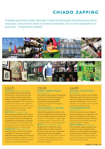 chiado zapping é habitado, percorrido, usado e apreciado. A cada início de estação, há novas pessoas, abrem novas lojas, outras fecham, fazem-se compras tradicionais, vêm-se novas exposições e espectáculos... Comprove por si próprio.