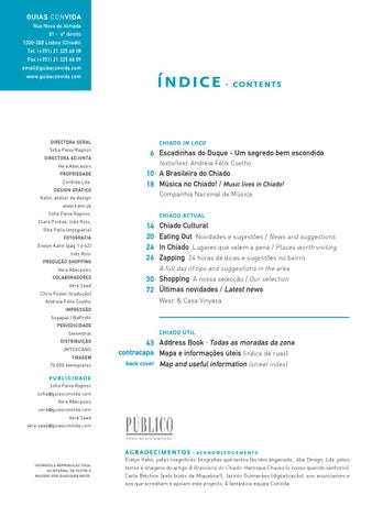 publicidade Sofia Paiva Raposo sofia@guiasconvida.com Vera Abecassis vera@guiasconvida.com Vera Saad vera.saad@guiasconvida.com APOIO NA DISTRIBUIÇÃO