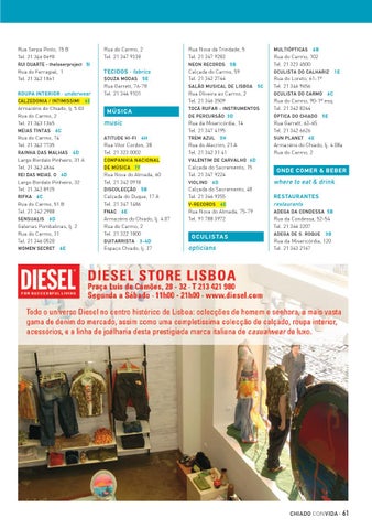 Rua do Loreto, 61-1º Tel. 21 346 9656 Rua do Carmo, 90-1º esq. Tel. 21 342 8244