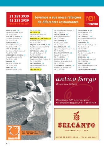 Rua Duques de Bragança, 54 Tel. 21 342 3088 Escondidinho da Curva 3 I