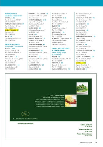 Espaço Chiado, lj. 15 Rua Nova da Trindade, 5 Tel. 91 476 7066 Feijão Verde