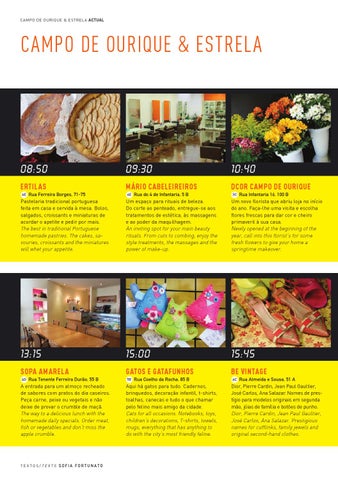 Rua Tenente Ferreira Durão, 55 B A entrada para um almoço recheado de sabores com pratos do dia caseiros. Peça carne, peixe ou vegetais e não deixe de provar o crumble de maçã. The way to a delicious lunch with the homemade daily specials. Order meat, fish or vegetables and don’t miss the apple crumble.