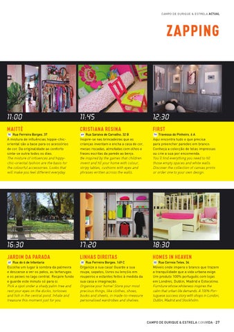 Rua Ferreira Borges, 37 A mistura de influências hippie-chicoriental são a base para os acessórios de cor. Da originalidade ao conforto sinta-se outra todos os dias. The mixture of influences and hippychic-oriental fashion are the basis for the colourful accessories. Looks that will make you feel different everyday.