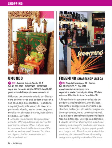 30 [8i] Rua da Esperança, 32 · Santos Tel. 21 396 2597 · 91 566 6010 www.freemind-smartshop.com segunda a sexta / monday to friday 12h-24h sáb / sat 10h-24h & dom / sun 10h-20h