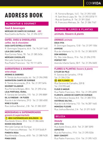 · R. Ferreira Borges, 14 C · Tel. 21 393 1450 · R. Sant’Ana à Lapa, 56 · Tel. 21 393 3373/ 71 · Rua do Quelhas, 8 · Tel. 21 391 3260 · R. Francisco Metrass, 36 · Tel. 21 386 7167