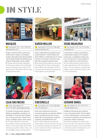 A morada certa para quem gosta de Moda com qualidade, inovação e modernidade. Um ícone do luxo lisboeta com marcas como Dior, Céline, Pucci, Lanvin, ou Ralph Lauren, entre outras. 3 The right address for those who like creative, modern and high quality fashion. This luxury Lisbon icon stocks brands such as Dior, Céline, Pucci, Lanvin and Ralph Lauren, among others.